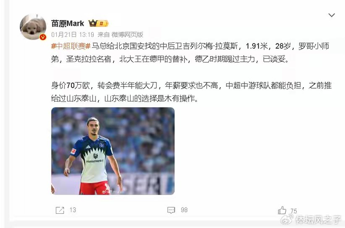 星空体育app-泰山不要国安当宝,70万欧德系中卫将加盟国安,泰山队是否会后悔|北京国安|吉列尔梅·拉莫斯|山东泰山|吉列尔梅-拉莫斯|中超_新浪体育_新浪新闻